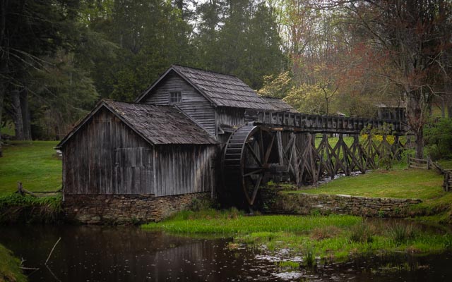Early morning, 9 AM-ish looking east out over North Carolina. It is a warm pleasant day on the Blue Ridge Parkway. Traffic here is so light that it is as if I am the only person on the road today. As I continue to roll north, pushing close towards the North Carolina / Virginia border, the clear, warm skies over head start to darken and I am quickly getting overrun by an approaching cold front. The temperature is dropping from a very acceptable mid are dropping and the winds are 70’s to the upper 50’s in just a few minutes. . . . and in less than half an hour the rain, thunder and lightning are upon me. Winds rushing up the mountain slopes rock and buffet my car . . . forcing me to slow my pace . . . and it is beautiful to be in the forefront of the maelstrom!But as quickly as it is upon me . . . it passes. Racing down the slopes and east towards the lowlands, leaving everything wet and clean.Leaving such places as Malbray Mills darkened by the damp and stunning in the muted overcast light. A light sprinkle passes overhead, just to make me wet as well!The end of the rain seems to be a signal to the wild Turkey Hens to come out of hiding. I had to slow to avoid them, they were so abundant once I crossed into Virginia. Stupid Birds anyway!!And this one is for those out there who know much more about birds than I do. I initially drove past this stunning red bird at 35 MPH. It had to be the brightest red that I have ever seen, as it sat in a tree 15 feet off the parkway. As soon as I could, I found a pull off and spun the car around, heading back to see if I could see it again . . . and miraculously it was still perched there waiting for me. I snapped off four quick shots across the passenger seat of the car, out the window . . . and it was gone. This is the only shot that was in focus. Can anyone tell me the name of this gorgeous little bird?