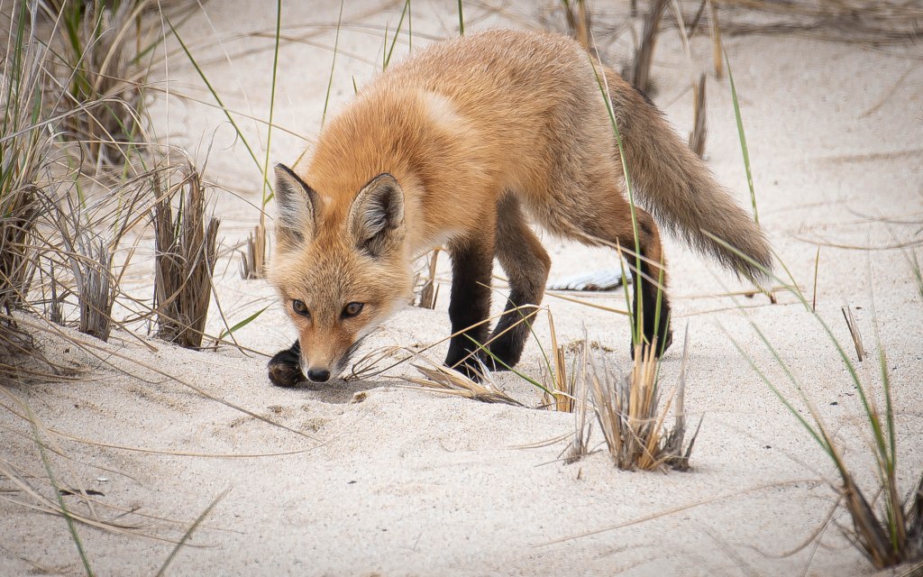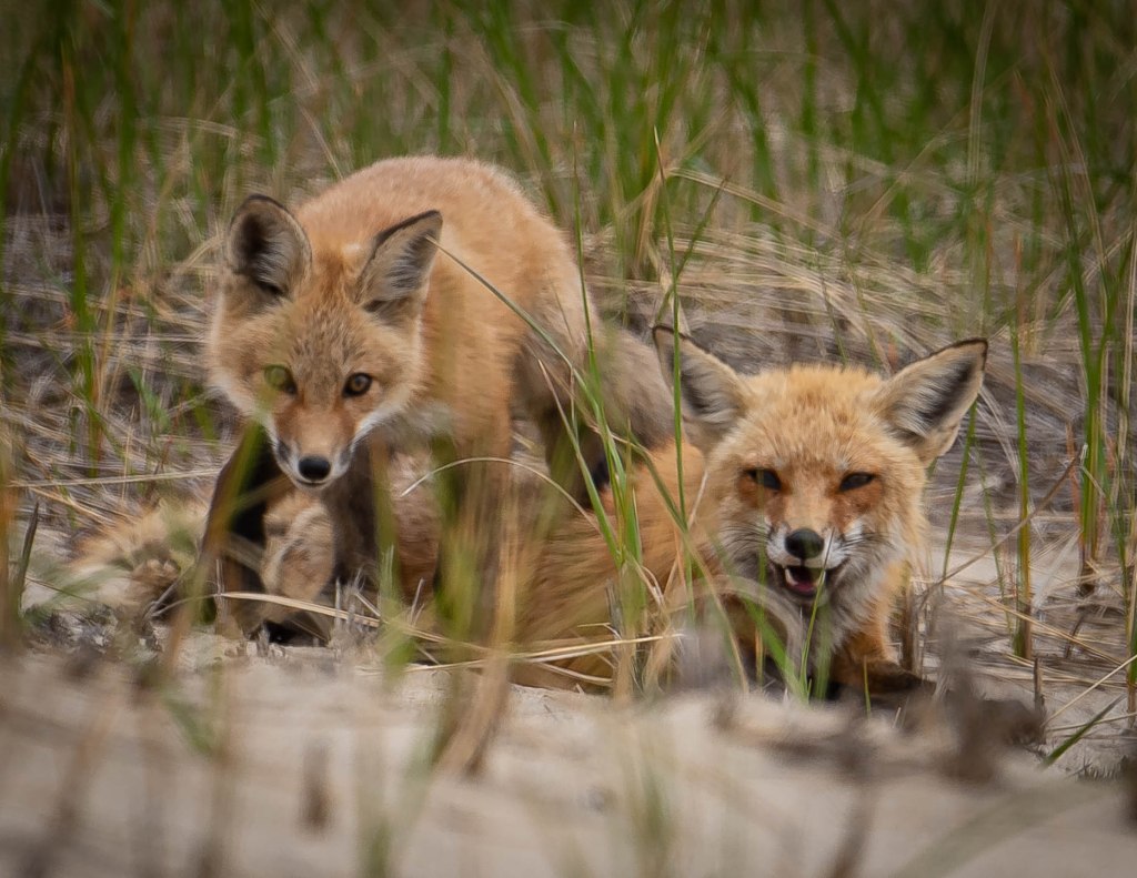 So, I resorted to my tried-and-true assistant. I asked my Guardian Angel, Kellie, who is always with me, what she could bring to me . . . what could she show me today . . . and as always Kellie came through. As I rounded the corner of the Over Sand Ranger Station, where private vehicles check in before going onto the beach, I literally almost tripped over a mother Red Fox and her Kit. I followed them, and they followed me, for almost and hour or so . . . I hope you like the pictures. Next up . . . Acadia National Park, Maine.