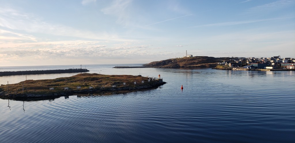 Port au Basques has to be one of the tiniest harbors I have ever sailed into, especially when you consider that there is a small island in the middle of the already tiny harbor . . . and the ferry needed to spin around 180 degrees to back into the berth to offload all the vehicles. My hat is off to the Ferry Captain, who masterfully maneuvered his vessel in these restricted waters and gently backed into the slip with nary a bump!!