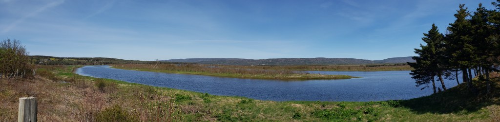 I am now in Codroy Valley. This area was first settled in the early 1800’s. Primarily the settlers came looking for land to build farms on, and if the land was forested with trees suitable for lumber, it was a bonus. The broad river that winds through the bottom of the valley has numerous islands, and the islands were made of rick soil washed down over the years and were perfect for growing hay for livestock. All in all, this region was and still is, a choice area for development and growth. Somehow though, I wonder what mark we have made here and just how beautiful this land was before we cut all the forests and plowed all the fields. I wonderful how amazing this place would have looked like 200 years ago with ancient and virgin stands of trees, before man whacked them all down. Codroy Valley is still a wondrously beautiful sight to see, and I can only hope that the development in years to come does not mar it for the worst.