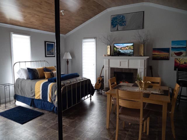 So I am now at my comfy landing pad about 17 km south of St. Barbe, at the small fishing village of Plum Point. This is a wonderful little location, operated by Ms. Majorie Dempster. It is known as the Pebble Beach Loft and it is perfect for my, hopefully, one-night stay, but I can see that, if the weather was accomodating, the beach directly across the road would make this a great little spot to crash for a longer stay! Think about it . . . when you decide to head north!!