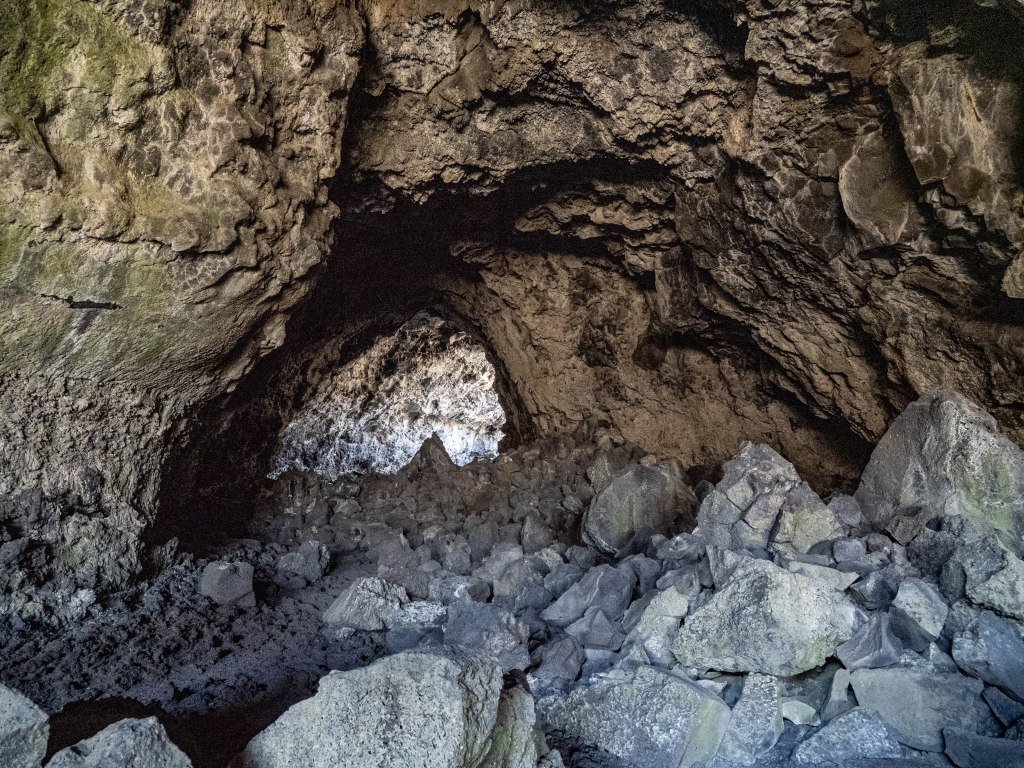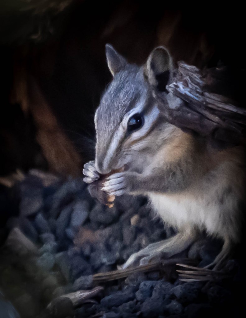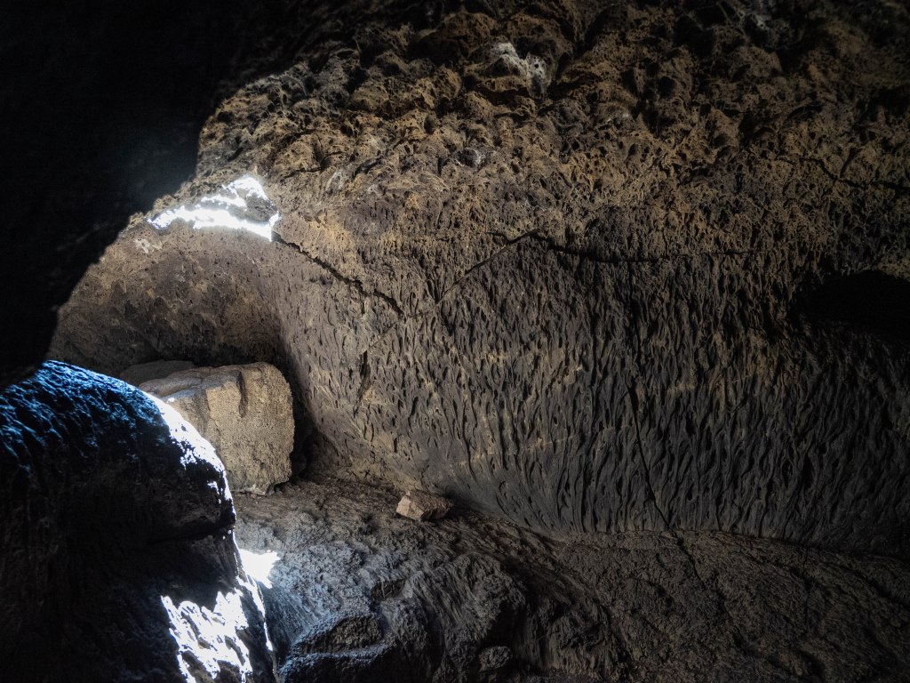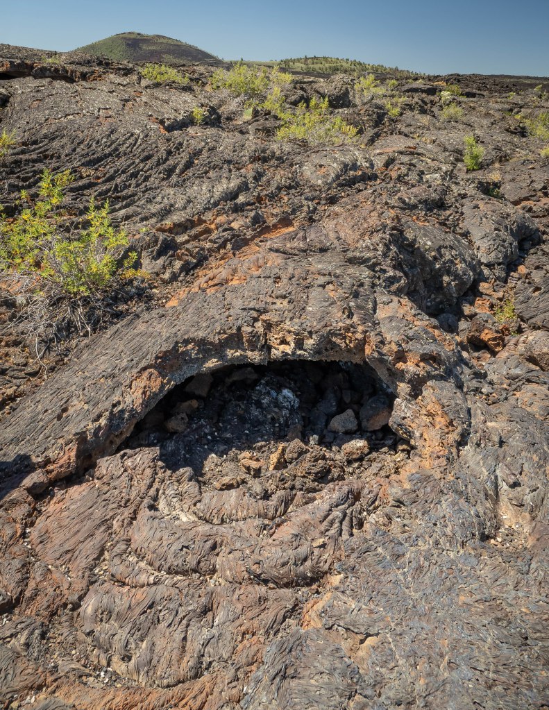 As you can see, the ground is actually a thick layer of volcanic ash and pumice. It is super crunchy and does not feel like it is going to hold your weight. There are waves of hardened lava and lava flows, some forming incredible sculptures. Life abounds here in this seemingly hostile environment.The acres of solidified lava flows are brutal to walk across. You never know when you will step on a thin crust over a lava tube and fall into a sharp crevasse and the sun bounces back, basically cooking you!Yet, life survives here with a variety of beautiful grasses and flowering plants.There are two kinds of lava rock. This is ‘a’A. It is hard but also relatively porous, depending on how much it foamed and encapsulated gasses as it hardened. You can see that it is shattered into boulders from the pressure of the liquid lava either pushing it forward or lifting it up. You do not want to fall on this stuff . . . it will eat you up almost like sliding across broken glass.This is pahoehoe lava. As it starts in a liquid form, it then cools and forms rope-like ripples that harden into amazing waves and patterns. The pahoehoe twists and bends forming cracks and gullies that the plants take root in. As the plants grow, their roots create pressure on the bands and crack it, thus starting the transition of lava into soil in a few million years.More pahoehoe fields.Mother Nature has taken the pahoehoe and formed these crazy shapes!The area is pock marked with collapsed lava tubes. This photo shows how the roof over the tube has failed and filled in access to the tube.Some may have actually been bubbles of gasses in the lava that hardened and have now collapsed.Some are still tubes though. The Park Service warns that all lava tubes will collapse over time, it is the nature of the tube! Entering is a risk, climbing down over shifting rocks and boulders that are jagged and sharp into damp and black voids . . . I love it!!Follow the light!!Some tubes get long and dark!Here you need to climb up through a collapsed roof.Some places you can see where the roof of the tunnel above you has already started to fail creating openings for sunlight and pigeons!Then there is light at the end of the tunnel . . . A narrow vertical hole from a collapse in the tunnel that leads up onto the surface of the lava field! This tube is approximately thirty feet across and high. Imagine, when it was a flowing lava tube, just how much molten earth moved through and out to form new land!This is a harsh environment . . . but life continues to succeed here!The fields are a haven for many animals, like this Chipmunk, as well as deer, goats, sheep and the ever-elusive Pikas.Just another landscape! This area was used to train the first Appollo team that landed on the moon in basic volcanology . . . possibly how it got it’s name!Some things here have not survived, and the park has many of these ancient conifers.These tiny plants thrive in the crushed lava. It is a small-leafed Pussytoes.Various grasses grow in the lava fields, providing food for the Chipmunks and birds. This is a member of the Scorpionweed family.Clusters of Hoary Pincushions abound.Along with large areas covered in Cushion Buckwheat.Pale Springbeauty is just beginning to push up through the lava soil . . . . . . along with Dwarf Purple Monkeyflower (I truly do not name these plants!! LOL)Prettiest of all are the bushes of Lewis’ Mock Orange.Strangest is this Silver Phacelia. that has an almost fuzzy look and texture.I will end this with a few more Chipmunk photos and invite you to skip flying all the way to Hawaii to see a volcano, when you can come to Idaho and have just as much fun (plus . . . there are twelve species of bats here in the caves that are just waiting for you to come say HI!!)I used to have a Chipmunk when I was a small child. They were sold in pet stores then, but like tiny baby turtles, sale of them is no longer allowed.Now you need to come visit our wild areas to catch glimpses of these little critters.I am certain that they would like to see you as well . . . especially if you leave anything tasty lying about your camp site.Please . . . do not deliberately feed the animals. Human food really is not Chipmunk food!