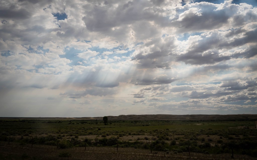 How anyone could look at the side of the butte and see fossils just astounds me . . . but I am so glad they did. It is history well worth seeing if you get the chance!Coming back across the plains in the late afternoon, I had to stop and capture these clouds and the sunshine penetrating through them. It was almost a rainbow but in pale pastels . . . . . . and the high plains sunsets can be the best with some crazy lights, colors and shadows.