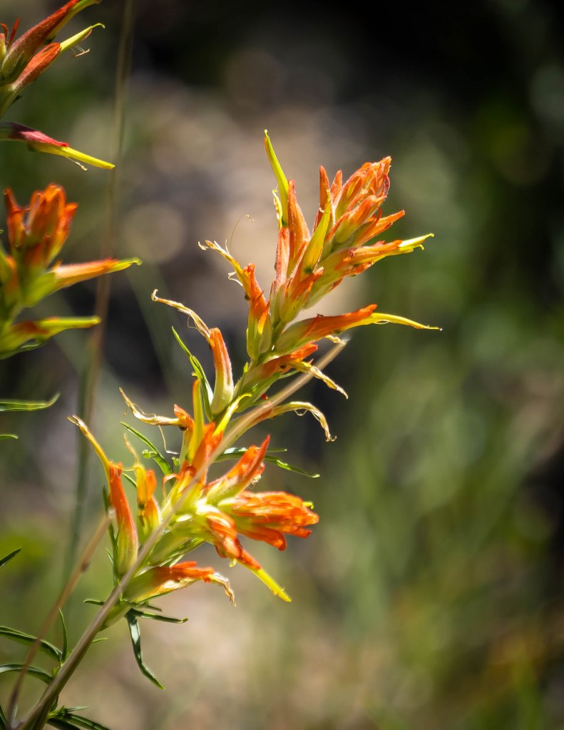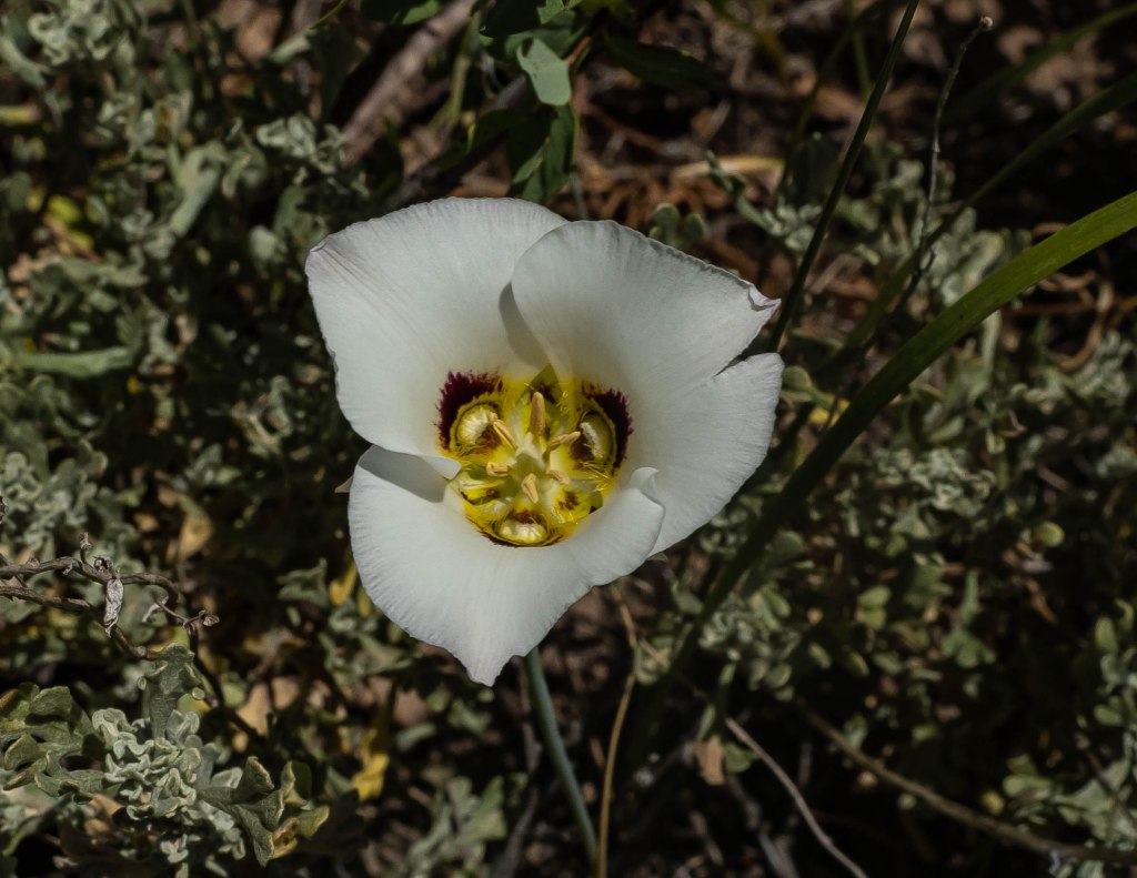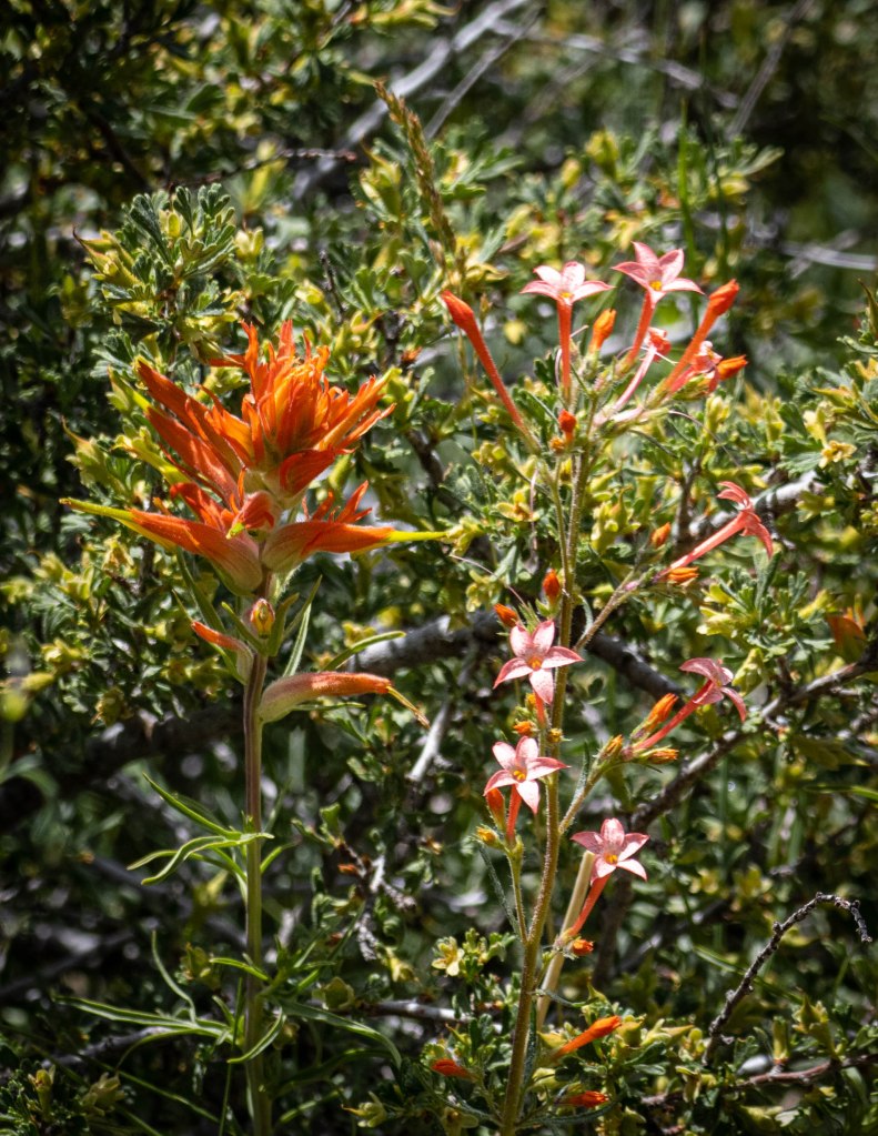 This is what the fossil bearing layers of shale look like. Can you see the fossils?Can you see the fossil now? This is a little minnow that died, sank to the bottom of the lake and was buried in the fine silt before any scavenger could destroy it. Then 3.5 million years later, a very nice Park Ranger sits and carefully separates the layers of shale, cataloging each find. This minnow is fossil #5002.More views from the top of the butte where my Subaru and I did a bit of off-roading.This is a Park Service maintained track on the butte. When this ends there is a very polite signing that basically states from that point you are on your own and Hava a Nice Day!! Trust me . . . there is not much of anything up here!! LOLWith a definite lack of water, there is not an abundance of wildlife here, although I was told that Elk and Moose frequent the area. I did see this blackbird with a nice insect meal . . . . . . and a very fast-moving Mountain Bluebird. I was lucky to catch this shot before it was off hunting again!This is an Oregon Checker-Mallow.Indian Paintbrush.Indian Paintbrush and Slender Skyrockets.A more common plant around the butte is this Sego Lily.SEEK calls this a member of the Ragwort Family but could not identify the exact species.
