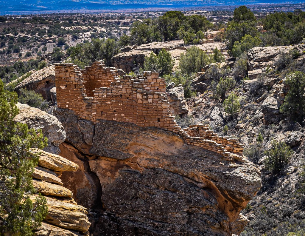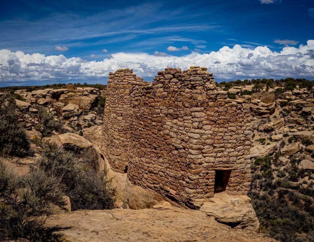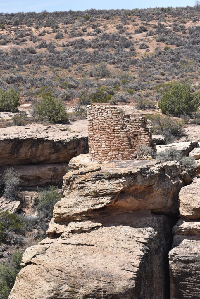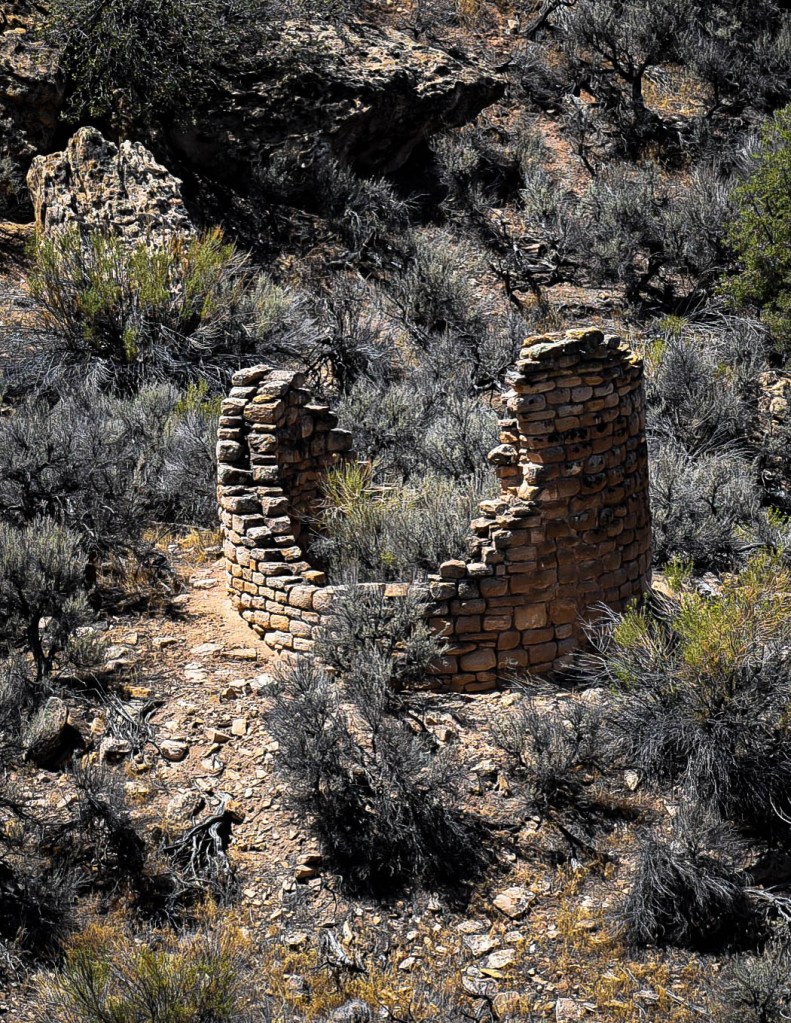 Fortress Building. Named for the location at the top of a rock spire, it is believed that this was a rally point for the Pueblo people of this village if there was a hostile attack. Pueblo people were primarily non-violent, but some of their neighbors were not!This is the Fortress Building from across the valley. You can see that the access to this structure would have been very limited if the ladders were all pulled up. Interestingly, the sides of the Pueblo structures that we would consider the “back side” have no access points or windows. This is believed to have been an additional defense method.This is Rock House. You can see how the natural structure of the rock overhang was used to create a dwelling.Side by side circular structures. The one on the left has a doorway on the opposite side, while access to the structure on the righ appears to have been below the ledge at the bottom where you can see the widow-like opening.Tower Structure. Buildings like this can be found scattered around the various Pueblo areas. This structure is positioned on the edge of the cliff looking down the long, narrow valley that divides this village.Storage Structure. This building has almost totally collapsed but based on its location in the bottom of the valley, and the grains that were uncovered inside the base, this is believed to have been a village storage structure.Truly one of the most beautiful structures, this square tower connected to the circular tower is architecturally fascinating. The use of these structures is not clearly known, but both structures appear to have had numerous floors for living and/or storage.The back side of the square tower/circular tower structure.One of my personal favorites!! The square tower is almost inaccesible on the rock that it is built on top of. This would have been a very simple location to defend. Opposite, on the edge of the valley is another family structure facing into the valley, while the back of the building faces towards the top of the mesa where possible hostile threats might approach from. I really would have liked to climb into the tower, but that is a great way to get into VERY BIG trouble with the Park Rangers!! This is called the Unit Structure. It is believed to have been a family dwelling, possibly the home of the elder leader of this Pueblo group. It appears to have been at least a two-story structure and could have housed as many as seven family members.A different Unit House with a separate smaller structure in the background.A multi-roomed, multi-story structure, almost like a sprawling ranch house, with rooms at different levels and various access points.Structures exist in many different places. Pueblo people utilized whatever nature provided to create storage rooms and dwellings, as can be seen by this two-room structure built under the rock overhang.My spirt animal is the Raven, and oddly enough, as I hiked around the last of the three Hoovenweep sites, I was joined by this gorgeous bird. He flew from structure to structure, always watching me, always making clicking noises with his beak! Either it was there to keep me from doing anything silly, like climbing where I wasn’t supposed to go . . . or it was just looking for a hand out!
