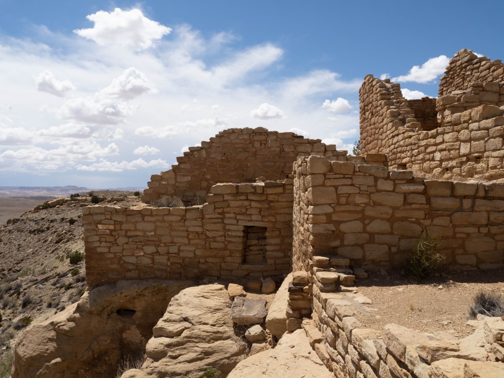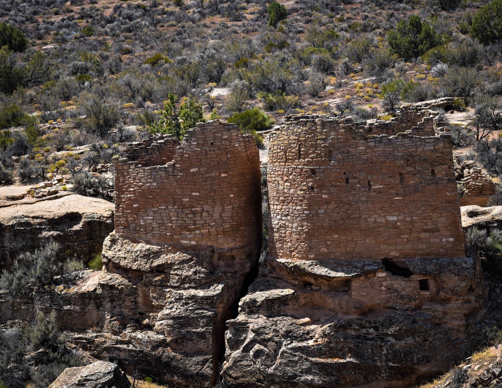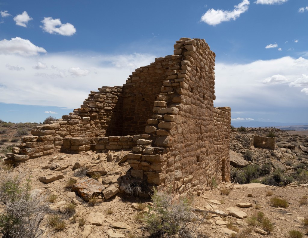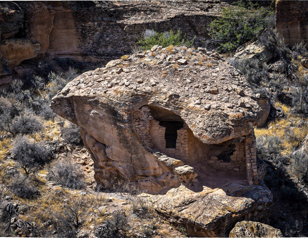 Fortress Building. Named for the location at the top of a rock spire, it is believed that this was a rally point for the Pueblo people of this village if there was a hostile attack. Pueblo people were primarily non-violent, but some of their neighbors were not!This is the Fortress Building from across the valley. You can see that the access to this structure would have been very limited if the ladders were all pulled up. Interestingly, the sides of the Pueblo structures that we would consider the “back side” have no access points or windows. This is believed to have been an additional defense method.This is Rock House. You can see how the natural structure of the rock overhang was used to create a dwelling.Side by side circular structures. The one on the left has a doorway on the opposite side, while access to the structure on the righ appears to have been below the ledge at the bottom where you can see the widow-like opening.Tower Structure. Buildings like this can be found scattered around the various Pueblo areas. This structure is positioned on the edge of the cliff looking down the long, narrow valley that divides this village.Storage Structure. This building has almost totally collapsed but based on its location in the bottom of the valley, and the grains that were uncovered inside the base, this is believed to have been a village storage structure.Truly one of the most beautiful structures, this square tower connected to the circular tower is architecturally fascinating. The use of these structures is not clearly known, but both structures appear to have had numerous floors for living and/or storage.The back side of the square tower/circular tower structure.One of my personal favorites!! The square tower is almost inaccesible on the rock that it is built on top of. This would have been a very simple location to defend. Opposite, on the edge of the valley is another family structure facing into the valley, while the back of the building faces towards the top of the mesa where possible hostile threats might approach from. I really would have liked to climb into the tower, but that is a great way to get into VERY BIG trouble with the Park Rangers!! This is called the Unit Structure. It is believed to have been a family dwelling, possibly the home of the elder leader of this Pueblo group. It appears to have been at least a two-story structure and could have housed as many as seven family members.A different Unit House with a separate smaller structure in the background.A multi-roomed, multi-story structure, almost like a sprawling ranch house, with rooms at different levels and various access points.Structures exist in many different places. Pueblo people utilized whatever nature provided to create storage rooms and dwellings, as can be seen by this two-room structure built under the rock overhang.My spirt animal is the Raven, and oddly enough, as I hiked around the last of the three Hoovenweep sites, I was joined by this gorgeous bird. He flew from structure to structure, always watching me, always making clicking noises with his beak! Either it was there to keep me from doing anything silly, like climbing where I wasn’t supposed to go . . . or it was just looking for a hand out!