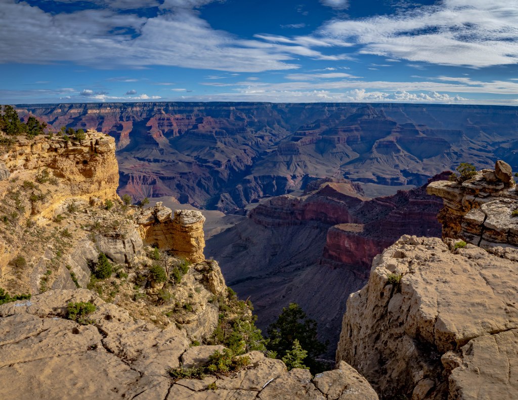 I have visited the Grand Canyon decades ago when traveling east to west with five of my children. I was between commands and two of my youngest had never met their grandparents, so on a whim, over their Christmas break, we piled into the minivan and headed for California. Along the way, which was a five-day adventure, we stopped at least once each day to see something or somewhere new . . . and one of the side trips was to the South Rim of Grand Canyon National Park. Some place in my mountain of old Polaroids, there is a group photo of the kids, smiling and standing on the edge of the canyon. One of my favorite photographs!