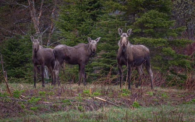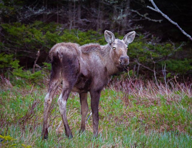 Last night, at the B&B I was staying in, I met Sam Dempster, the husband of Marjorie Dempster, the poor woman I have been driving nuts with phone calls while I waited again to find out if the ferry was sailing to Labrador again. I am staying at Marjorie’s and Sam’s home and B&B. Sam is this wonderful guy, with a strong handshake and ready smile, a fisherman and someone I instantly liked. Sam is why I was up and out at 5 AM this morning, the guy who told me where to find Moose . . . and he was sooooo correct . . . I found the first moose of the day five minutes after leaving thier driveway . . . and then 18 more before 7 AM!! Oh . . . and a dozen caribou as well! Sam is a genius!!